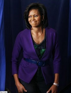 Add a belt โ Take a cue from Michelle Obama: you can add a skinny leather belt, a wider elasticized belt, even a wide strip of grosgrain fabric. If you leave the cardigan unbuttoned, you can maintain that vertical line down the body which will lengthen and slim.