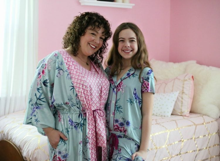 Being at home 24/7 with my family has its ups and its downs, but I really love how it has given me time to get to know my daughter better. She is heading to middle school next year and is that age between little kid and teen and it's pretty wonderful. We enjoy one another's company and respect one another, and it's fun that she's still at an age where she thinks it's cool to twin with her mom. It's nice to now have these photos of us twinning together to remember a happy moment during this time of sheltering in place and of this age. These pajamas, this fun moment, and these photos… it's like an early Mother's Day present!