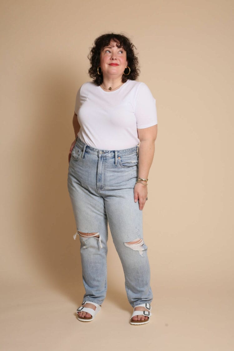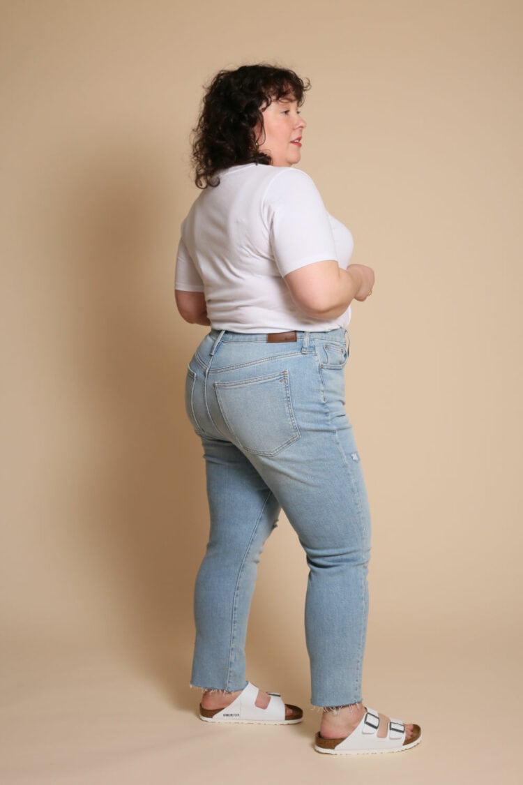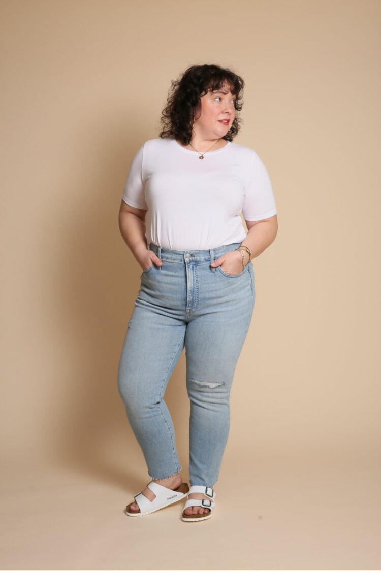 Madewell is great for on-trend denim done well. They get the right washes, the right hem lengths, the right amount of distressing. They're also great for classic fits and washes you can rock for many stylish years. They also have a nice size range with most of their clothing up to size 24 with petite, tall, and taller offerings so I feel better featuring denim I know the majority of the Wardrobe Oxygen audience can also wear.
