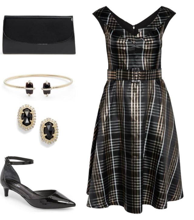 Purple plaid and red is a fun combination, but if you don't choose the right accessories the look can read cheap or childish.  Black accessories with shine and plenty of personality mainting your style aesthetic while tempering the bold colors of the clothing.