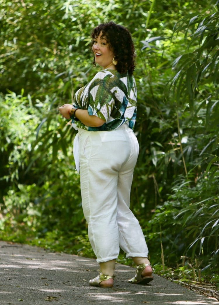 Love how you styled these Chico’s pieces. I want to purchase the white linen pants, tried the size 2 but they wouldn’t fasten around my thick waist. I tried the 2.5 & they were a little too big & the pants seemed too oversized. I have small hips/legs, Apple shaped. Any suggestions? I love them in Navy..the paper bag waist band & tie belt are great details! Also there are two types of linen pants, the crops are the ones you’re wearing in the photo correct?