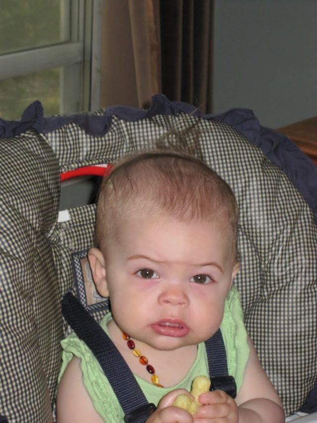 When she moved her head from the high chair, her hair stayed like that… a little girl Alfalfa.