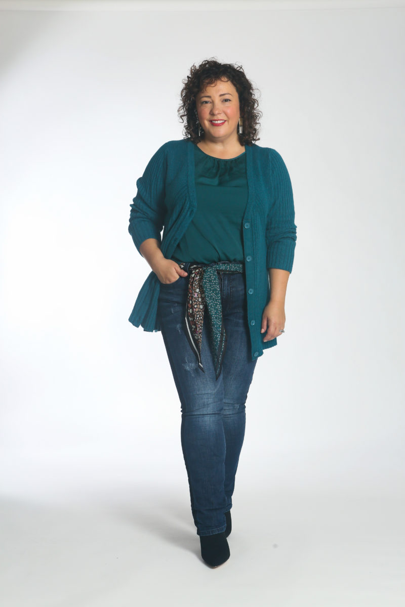 For my accent color, I went with all the greens and teals that cabi is showing this season. Jewel tones like these are so on trend this season, and this is a color that looks great on many but also plays well with other colors like burgundy, navy, purple, and even mustard and pumpkin. I specifically chose pieces that not only are versatile within this capsule wardrobe but will also work with pieces that may already be residing in your closet.