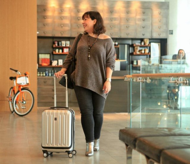 For this look the travel was by car but usually I wear a pair of ankle boots with a low block heel. I love L’Amour des Pieds for super comfy boots that don’t look frumpy. Cushioning, arch support, plenty of room in the toebox, and buttery leather. My current pair isn’t available but these are the ones currently on sale at Nordstrom: http://bit.ly/2DMCUFU