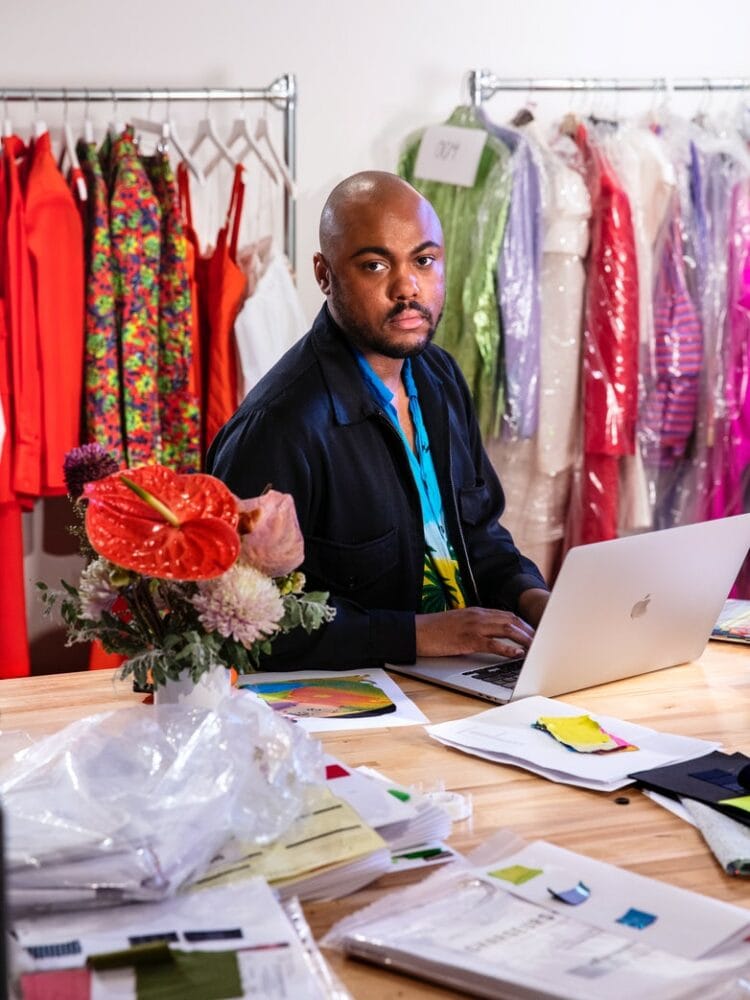 Christopher John Rogers was born and raised in Baton Rouge, Louisiana. Inspired by anime and the fashion he saw at his Baptist church on Sundays, Rogers began designing clothing for superheroes from random fabric and even trash bags. Rogers attended SCAD and created his label as his senior thesis. He received his first major press when Cardi B wore one of his coats to the 2017 BET Hip Hop Awards. (BET)