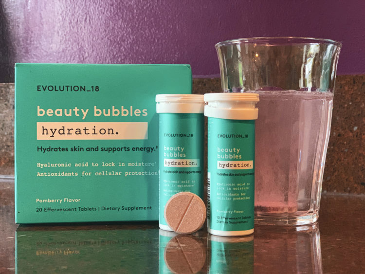 Packed with bovine collagen peptides to help build collagen and elastin in the body, these effervescent tablets promote healthy hair, skin, and nails. Added essential vitamins and minerals work to nourish your entire body and provide an extra beauty boost. Add a tablet to 8oz water and allow to dissolve. Beauty Bubbles have a pomberry flavor and there are 20 of these round tablets in a box. My husband has purchased similarly-shaped hydration tablets with a similar flavor to drink when he’s spending the day gardening or doing outdoor sports and we always took them with us when we attended music festivals. These are not a replacement for those. In place of calcium, chloride, and potassium, the Beauty Bubbles have ingredients to hydrate your skin and improve elasticity from the inside out. I’ve tried these a couple of times and the flavor isn’t bad, they dissolve well, but I am not sure if they accomplish anything.