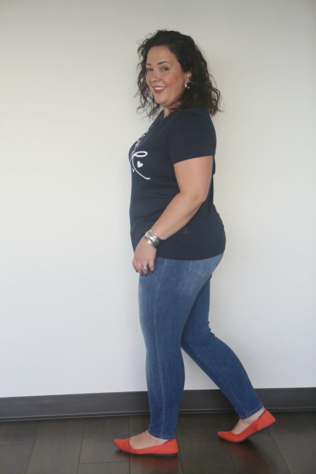 This t-shirt has already made its debut on the blog (see it in this post) but I am showing it again untucked and not under a blazer so you can see the fit. Also, this shirt has been through the washer and the dryer and still looks like new. While it's 100% pima cotton it is super soft and doesn't shrink. While I love this graphic, this same tee comes in four other options. This t-shirt retails for $35, comes up to size XXL and is available in regular and petite sizes.