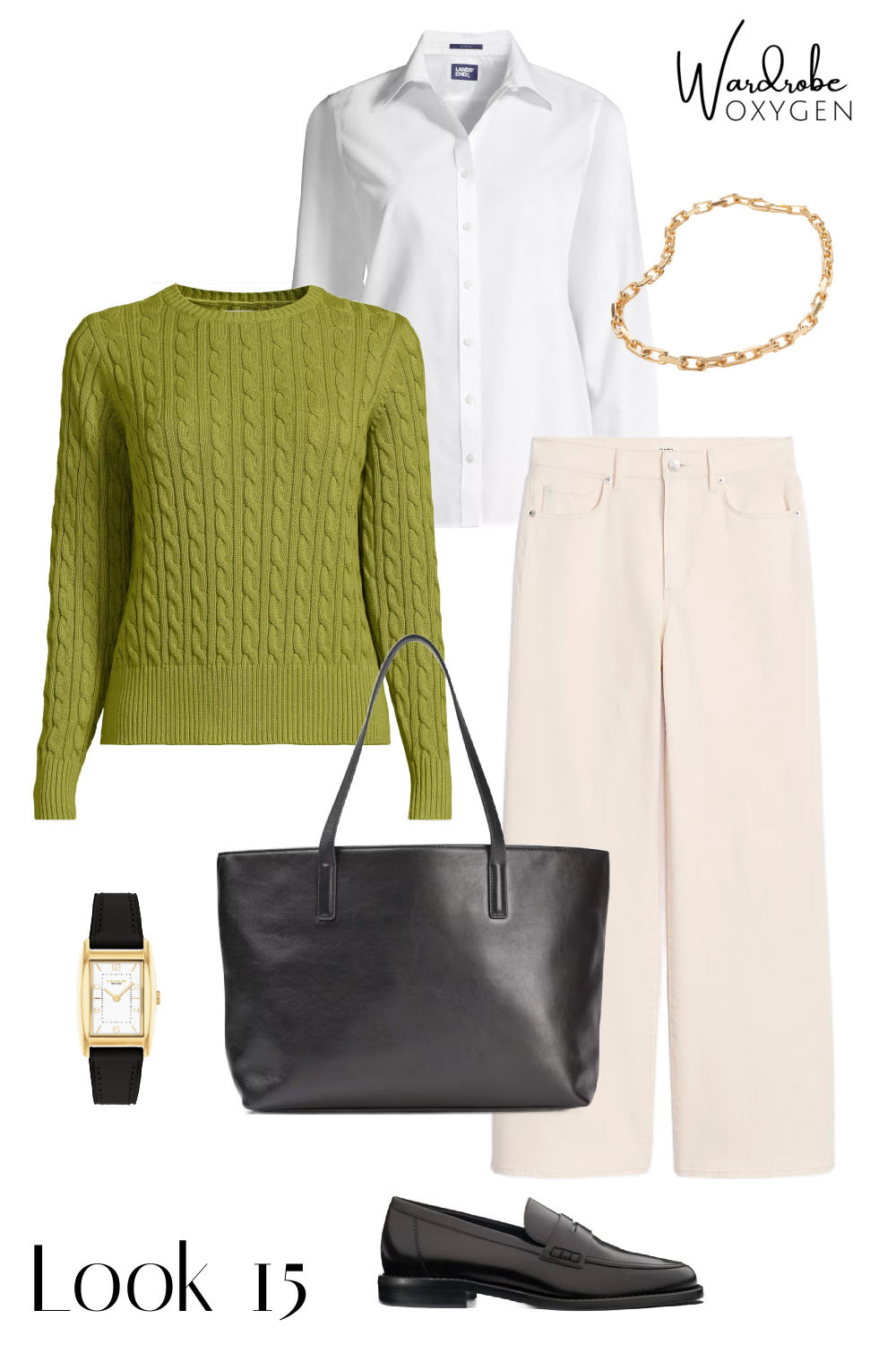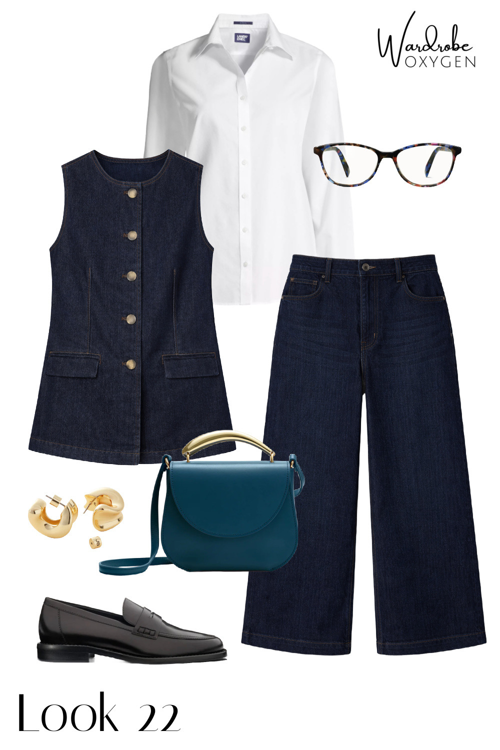 I always have pieces I own or am considering buying in my capsule wardrobes and this one is no different. I own the lime sweater in a different color and other sweaters in that same green. I ordered the denim vest and matching cropped jeans, seeing it as a more versatile and modern alternative to my Talbots denim mini capsule wardrobe. I own the tote, the ribbed tee, the jeans in a different wash, a previous year version of the tank, the belts, and while I don't own the loafers, I have many shoes from the brand and a similar pair that offers metatarsal support and a bit more width.