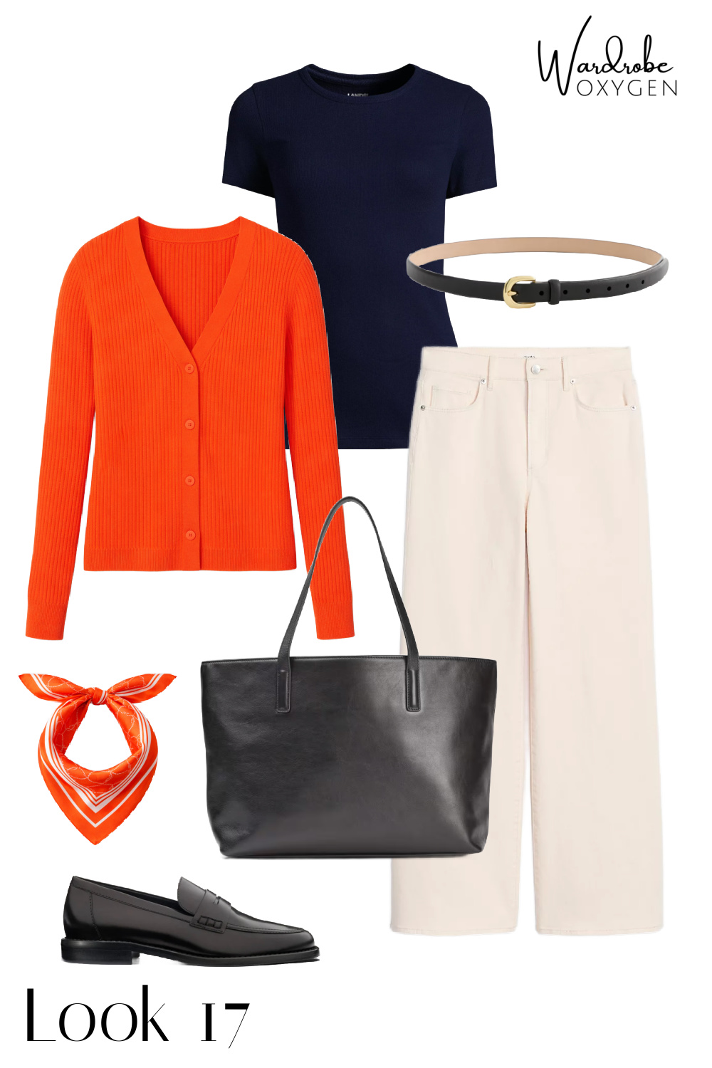 Shop the Capsule: orange shell | navy tee | striped tank | camel blazer | orange cardigan | green sweater | white shirt | striped sweater | denim vest | cropped jeans | camel pants | cream jeans | loafers | sneakers | belt | tote | crossbody | earrings | necklace | scarf