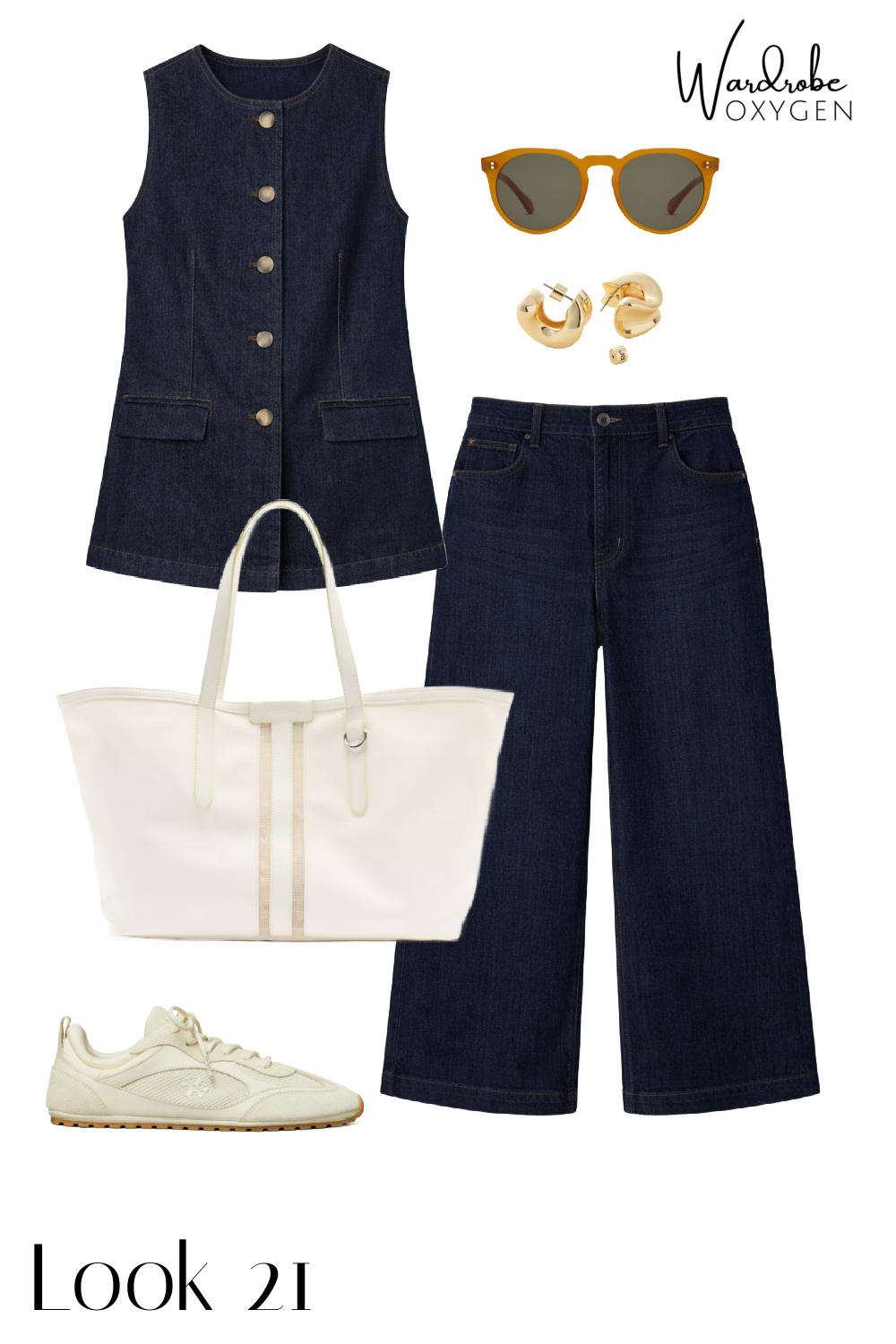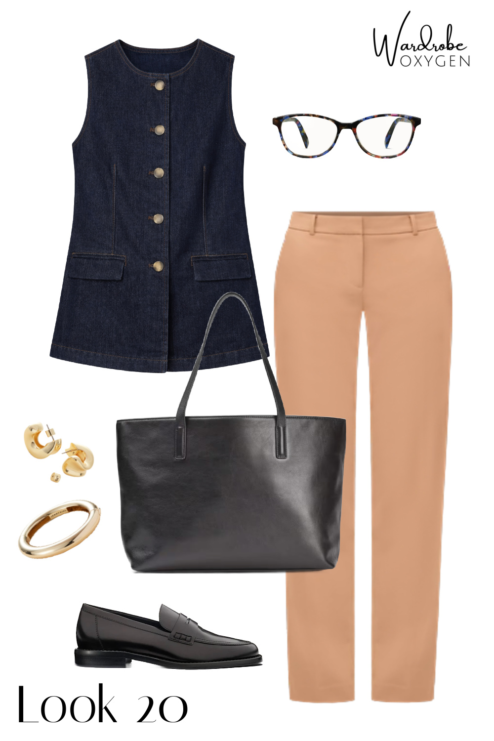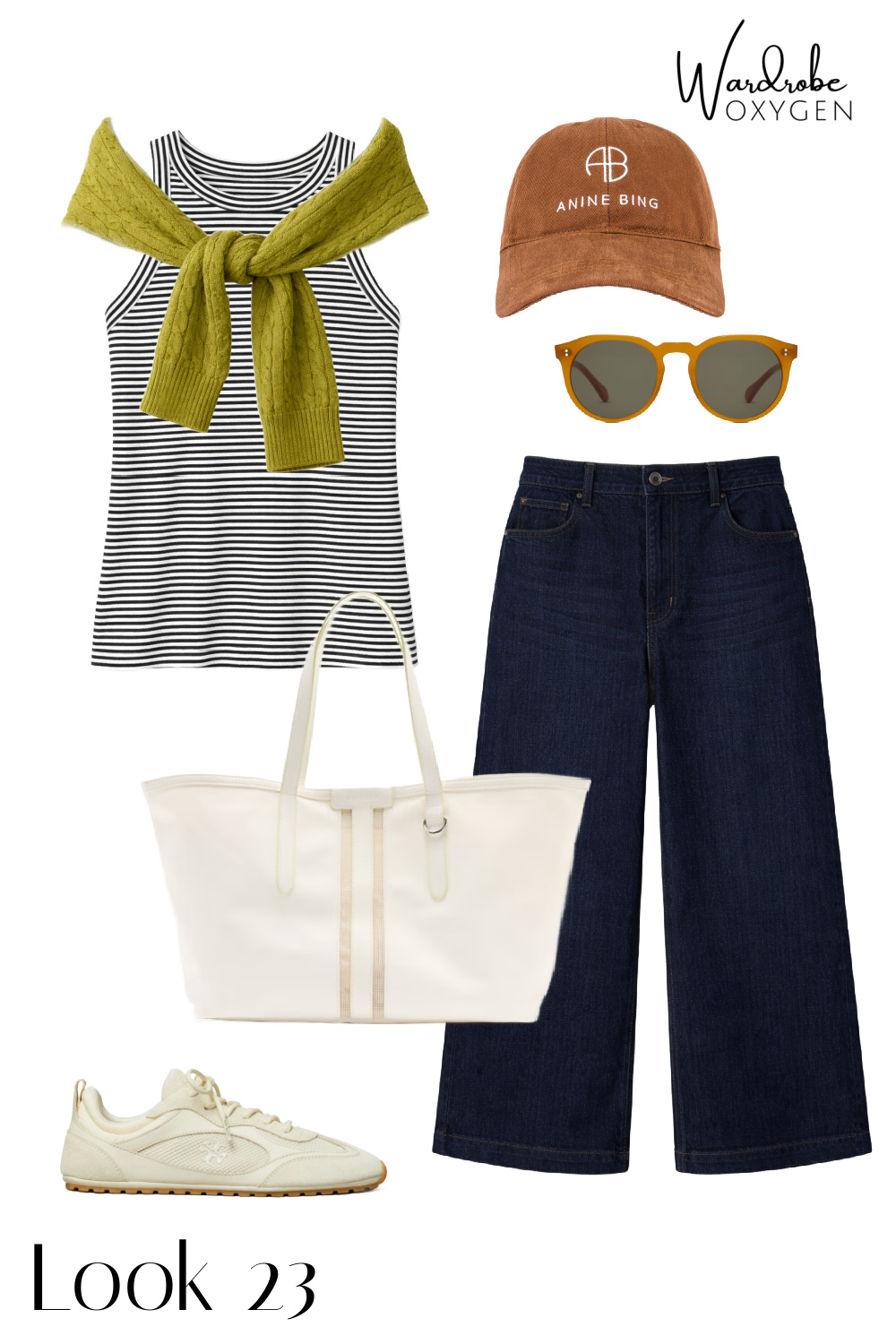 - I added a few extras in some of the looks: an elevated baseball cap from a fashionable label (Anine Bing; logo canvas caps continue to be a popular trend and great for sun protection and bad hair days), a canvas tote for a more casual look (Athleta), a classic watch (Coach), a bold yet timeless bangle I personally own and wear all the time (also Jenny Bird), chic yet wallet-friendly sunglasses (Quince), and a pair of glasses (Warby Parker, comes in widths) that feel modern yet classic.