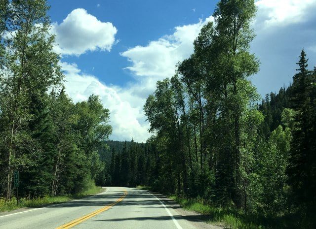 Soon, the land became more mountainous, and we saw more developed and thriving communities. We had options for gas and food. We drove through adorable towns like Pagosa Springs (if I win the lottery don’t be surprised if we move there!), and through the Rio Grande National Forest. The view driving down the mountain in Rio Grande National Forest was utterly spectacular and we all agreed we MUST return and camp there, hike there, soak up the beauty.