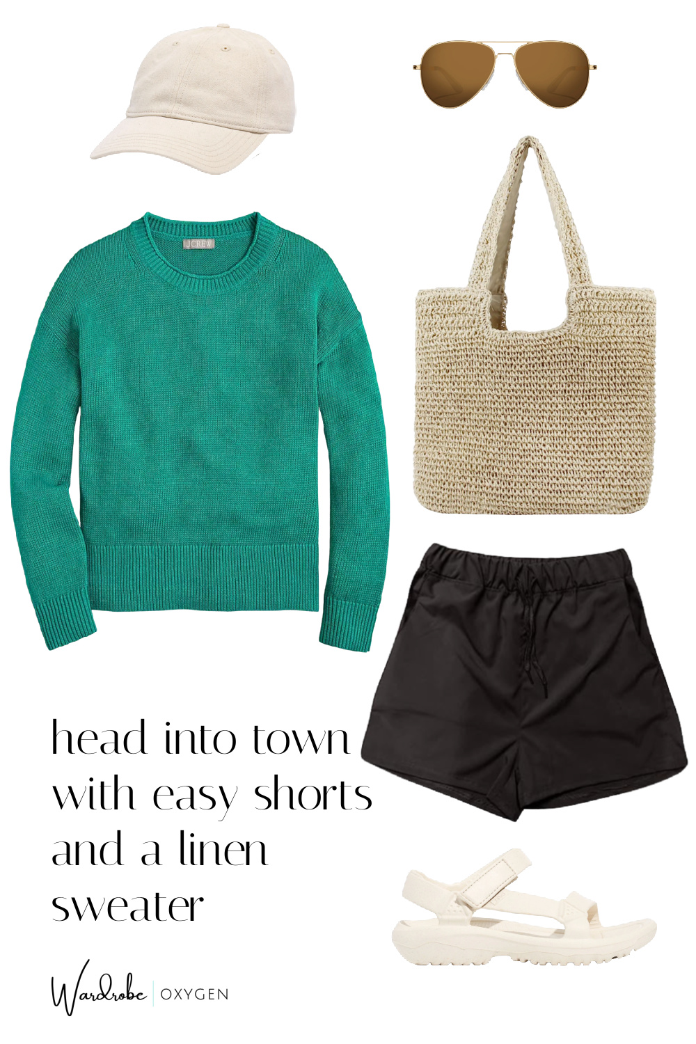With summer wardrobes, you want to stick to a color story so items mix and match with ease. Usually, my capsule wardrobes are based on the black and white color palette. I know many find white easy to get dirty and black too harsh or hot in summer. Most everything featured here comes in other colors or you can find similar for sale this year in a color that pleases you.
