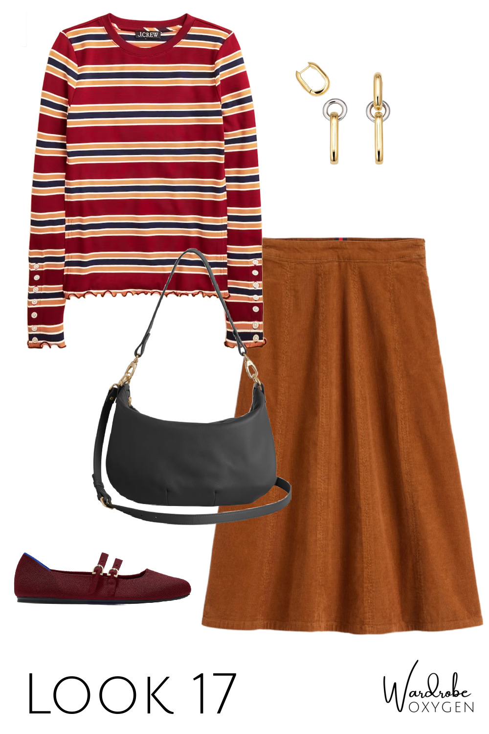 While I call this a teacher capsule wardrobe, it clearly can be for any type of person. I started crafting it for a more casual non-work look, but once I saw the cute book cardigan on the Joanie website and then saw a teacher content creator on Instagram in this J. Crew striped top paired with black pants, the person in my mind who would wear this collection was a teacher.