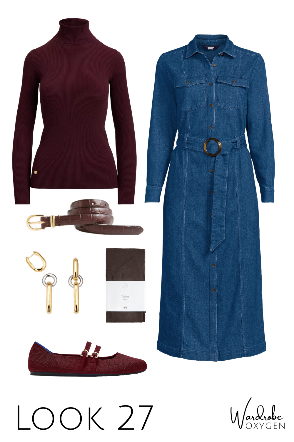The shoes focus on comfort with style. Rothy's are a classic for ease of wear, washability, and comfort. The burgundy color and shape can work with skirts and dresses as well as pants and jeans. Consider switching up your opaque black tights this season for a semi-sheer dark brown pair; the effect is modern and sophisticated but still as versatile (and yes, they can be worn with black or brown shoes and accessories). The boots are a bit of fun and glam, but with a walkable low heel and a reasonable pricepoint. And the sneakers are more elevated than a classic pair of tennies without sacrificing comfort (see this video for more details on this style of sneaker).