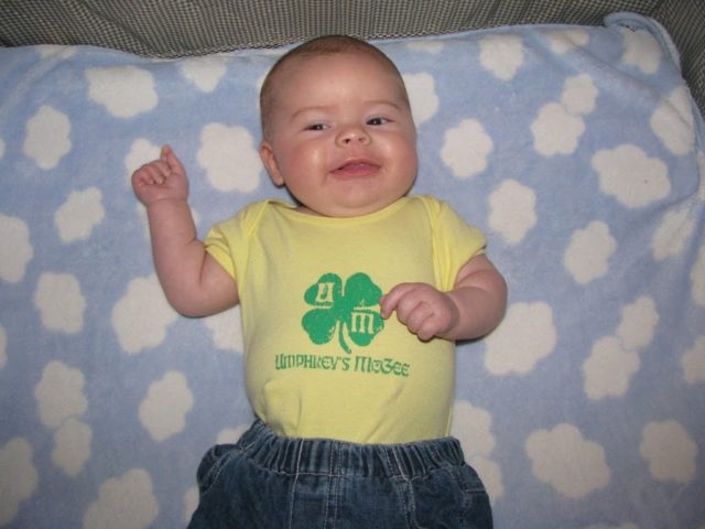 “Emerson has a secret admirer who likes jam bands!” We figured out pretty quickly which friend of ours sent her the onesie. He was the one who saw this band with my husband in Jamaica and with both of us when I was in my last trimester. We gave him a call to thank him. But it was pretty funny. This picture was taken so I could put it in his thank you card. 🙂
