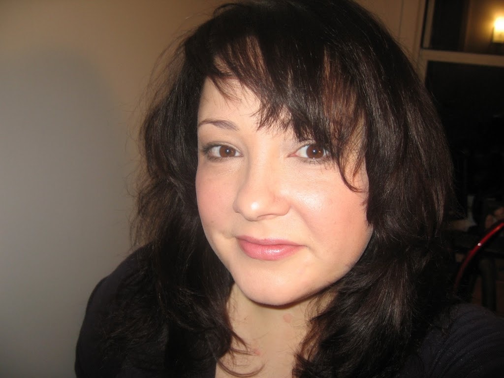 Makeup is Napoleon Perdis primer, L'Oreal True Match concealer in W1-3, philosophy The Supernatural in Beige, Nars blush in Orgasm, Body Shop Sheer Lipcolor in Sheer Strawberry, Revlon ColorStay shadow quad – ivory in inner corners, khaki on lid, olive along lash lines and in crease. Lashes curled, two coats of Benefit Bad Gal mascara.