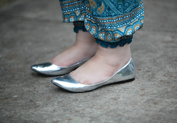 The pants, and the prints, and the color, love it! After reading about how flats in general are painful for you, you are rocking the silver ones here! Love it.